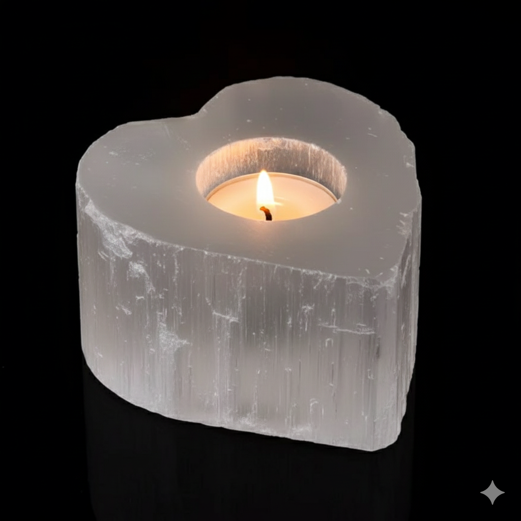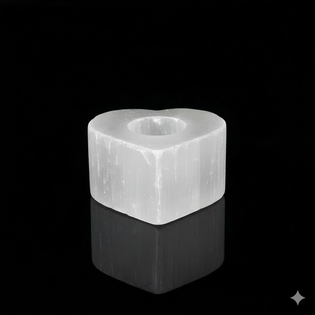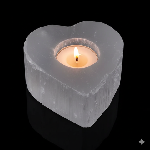 Elevate your surroundings with the harmonious energy and aesthetic allure of our heart selenite candle holder, a cherished addition for those seeking both beauty and positive energy in their space.