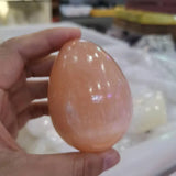 This unique Orange Selenite Egg is a handmade masterpiece, meticulously polished for a sleek and glossy surface. Please note that it does not include a stand, and handling requires extra caution due to its soft composition. Originating from crystallized salt formed millions of years ago, this crystal holds a Mohs hardness of 2.5, making it susceptible to scratching.