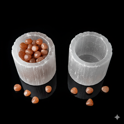 Crafted from crystallized salt over millions of years, Selenite is abundant and easily shaped, making it ideal for sculptures and jewelry. Its soft texture allows for unique and beautiful craftsmanship. To enhance its cleansing properties, regularly charge your Selenite candle holder by placing it in natural sunlight for a few hours, helping to release any trapped negative energy and recharge the crystal’s healing qualities.