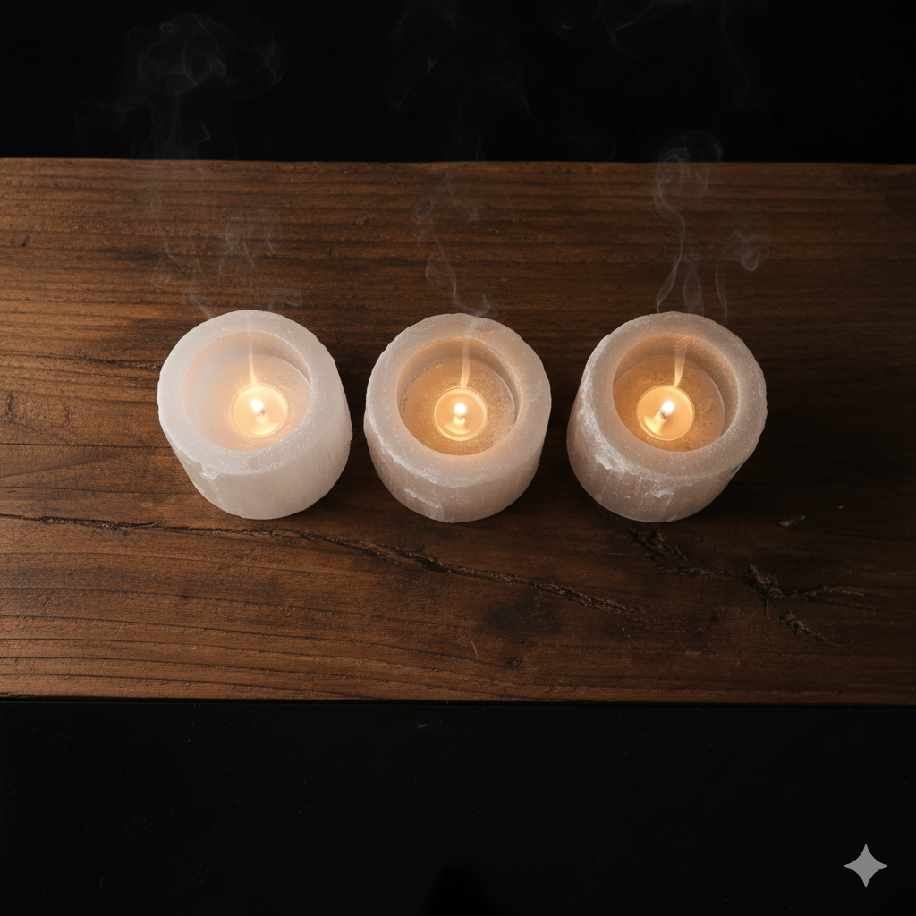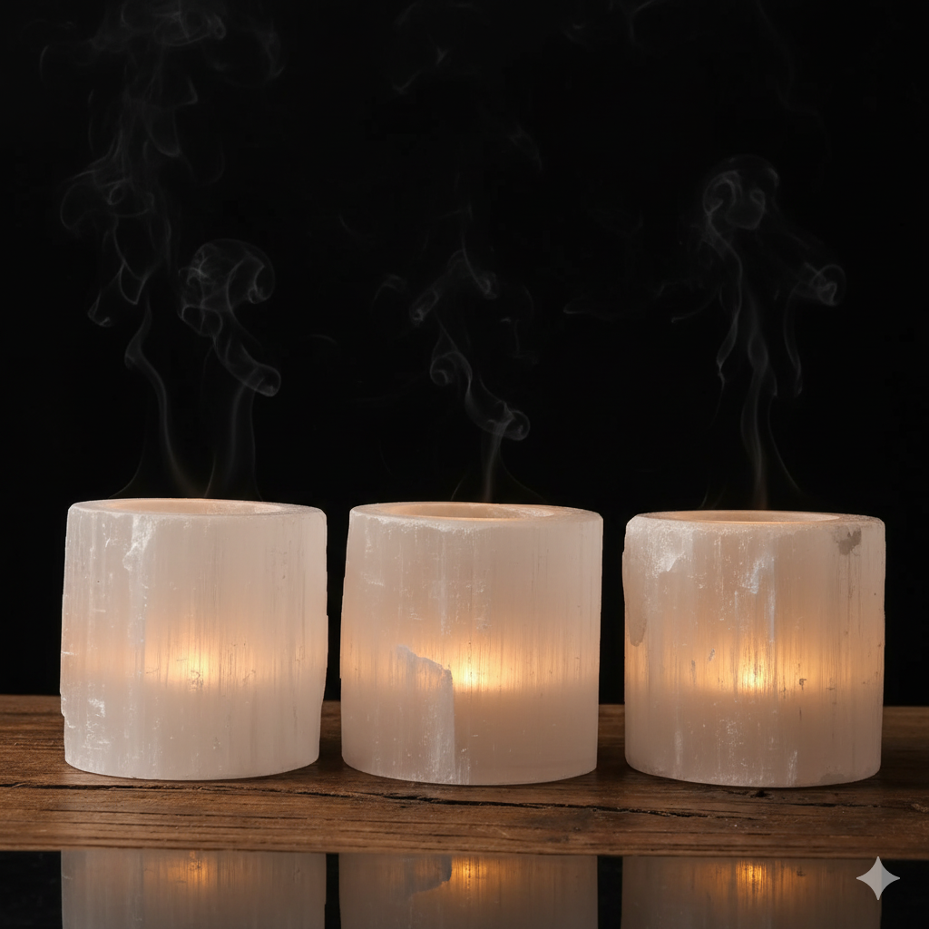 Selenite's versatile nature has been used in various forms for centuries, from jewelry and glass panels to sculptures. Its ability to absorb negative energy makes it the perfect companion for stress relief and relaxation. Light the tea light during meditation or after a long day to cleanse the mind, body, and soul, setting the stage for peace and serenity.